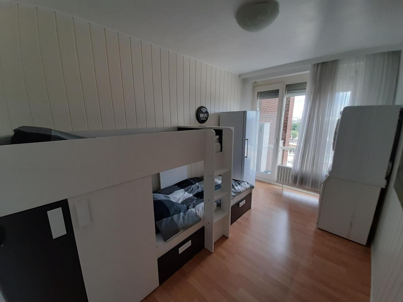 Two-Bedroom Apartment. The apartment features 2 bedrooms, 1 bathroom and a kitchen. The apartments kitchen is available for cooking and storing food. Featuring a balcony, this apartment also provides a washing machine, heating and a flat-screen TV. The unit offers 5 beds.